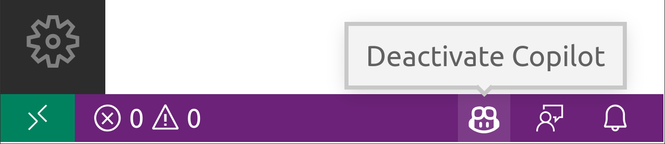 때때로 GitHub Copilot의 제안이 방해가 될 수 있다. 이 경우 에디터 창의 오른쪽 하단에 있는 확장 프로그램 아이콘을 클릭하여 전역적으로 또는 특정 프로그래밍 언어에 대해 비활성화할 수 있다.